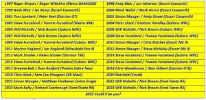 2025 Abingdon Stages Entry List at 8th June – 9am
